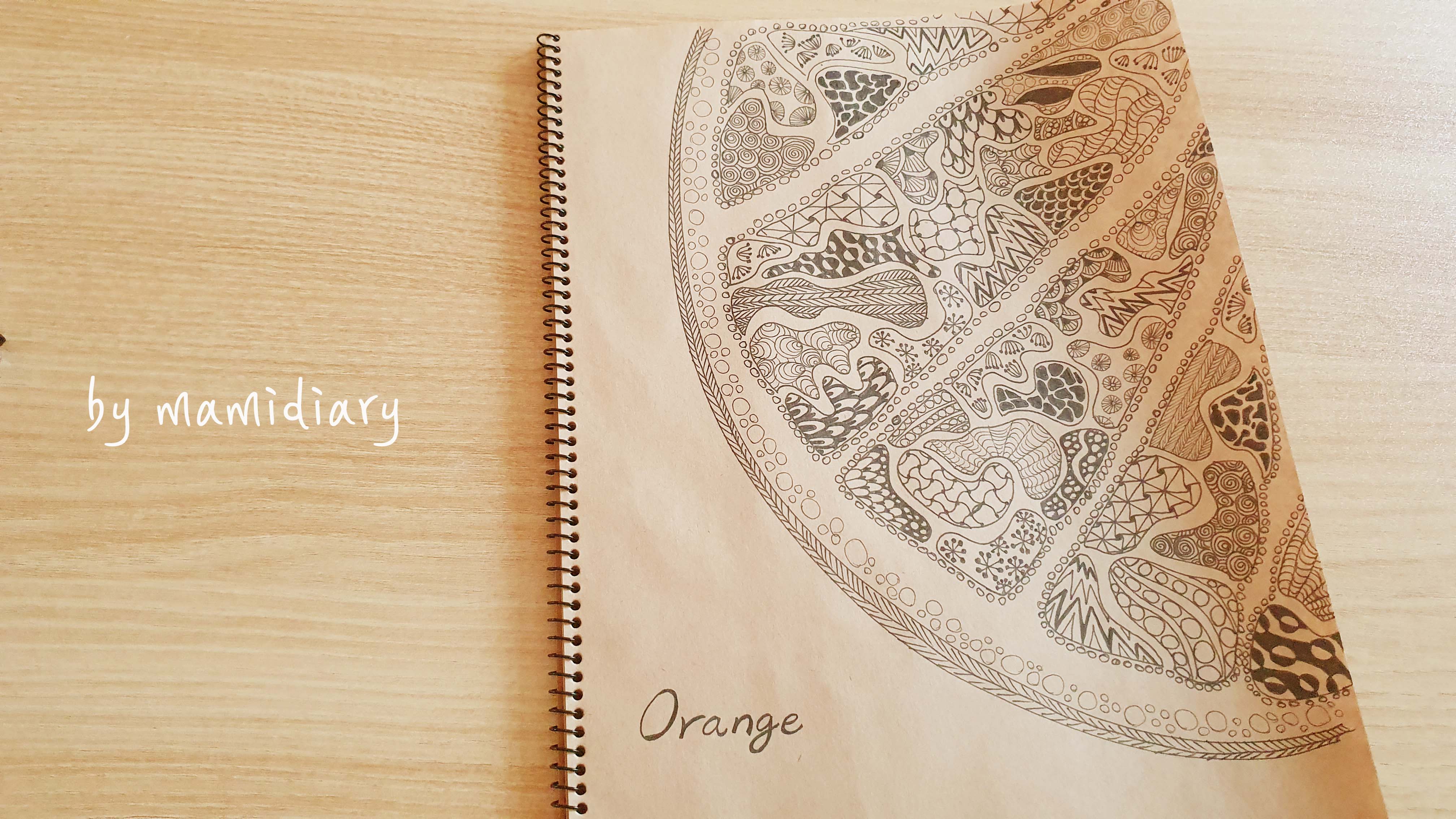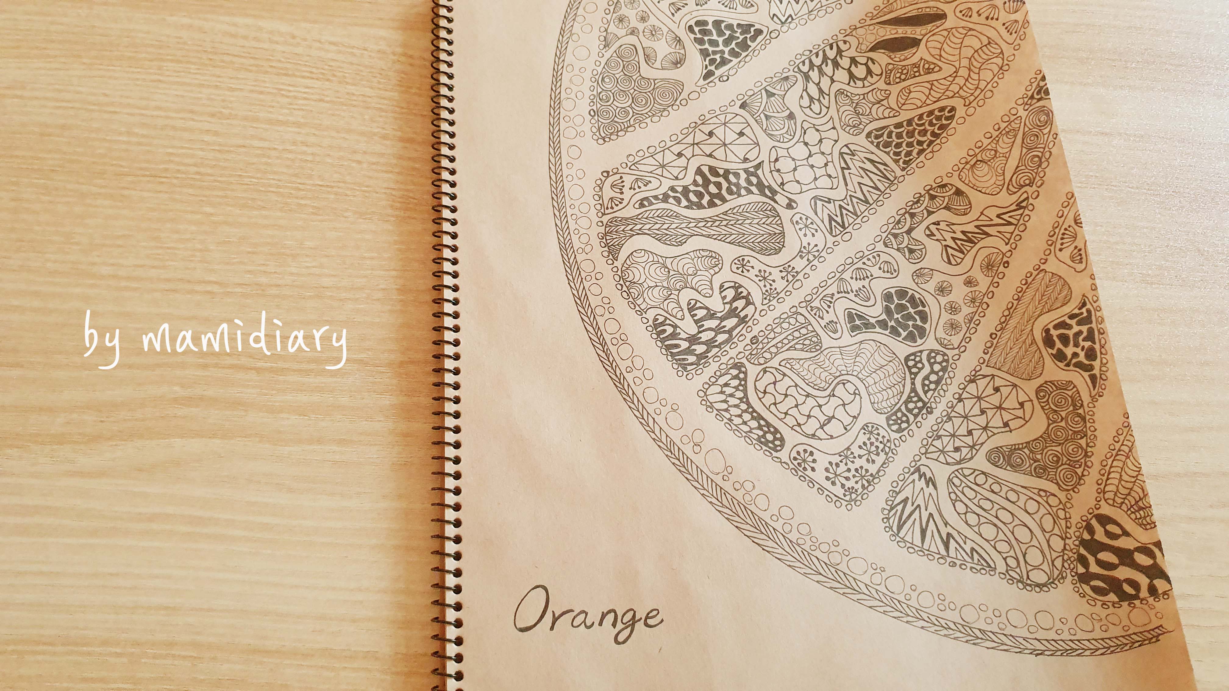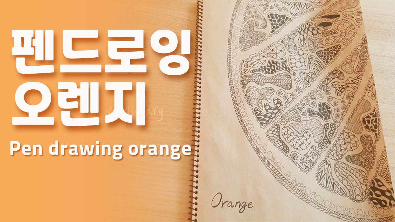 오렌지 펜그림. 펜으로 그림그리기.집콕취미