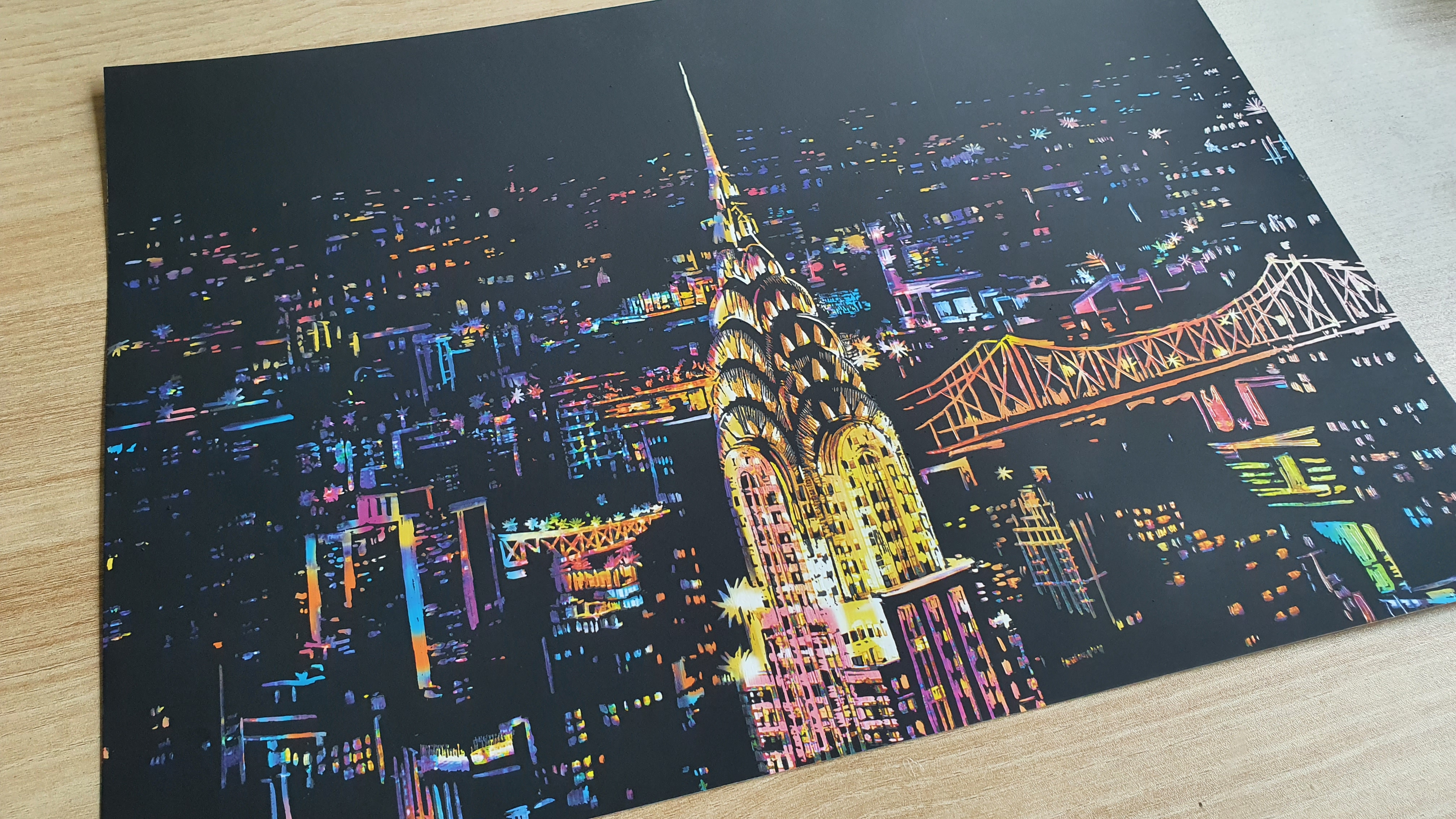 밑그림이 있어서 펜으로 따라 긁어내기만 하면 이렇게 멋진 야경이 나타나네요~