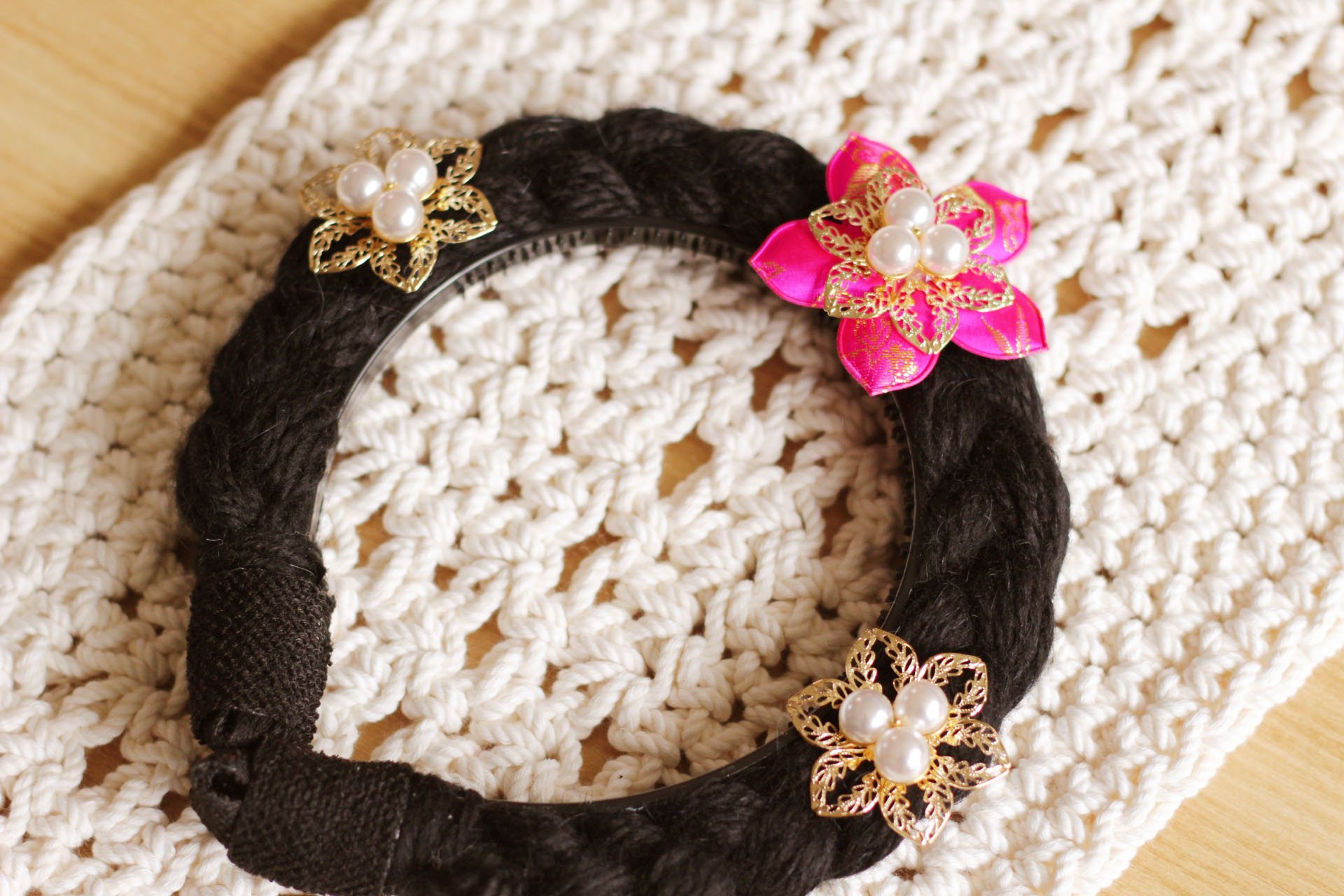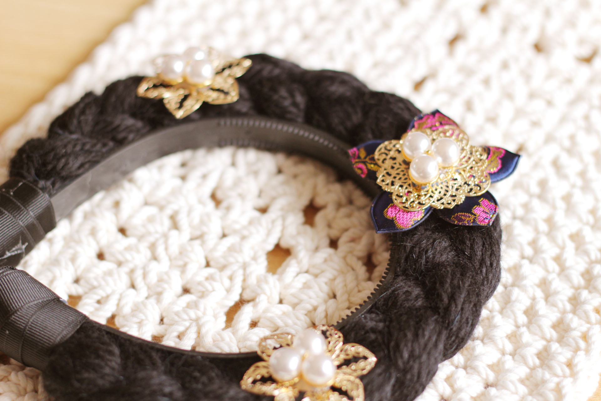 검정색 털실과 머리띠, 금속장식 등등을 이용해서 만들어 볼께요~