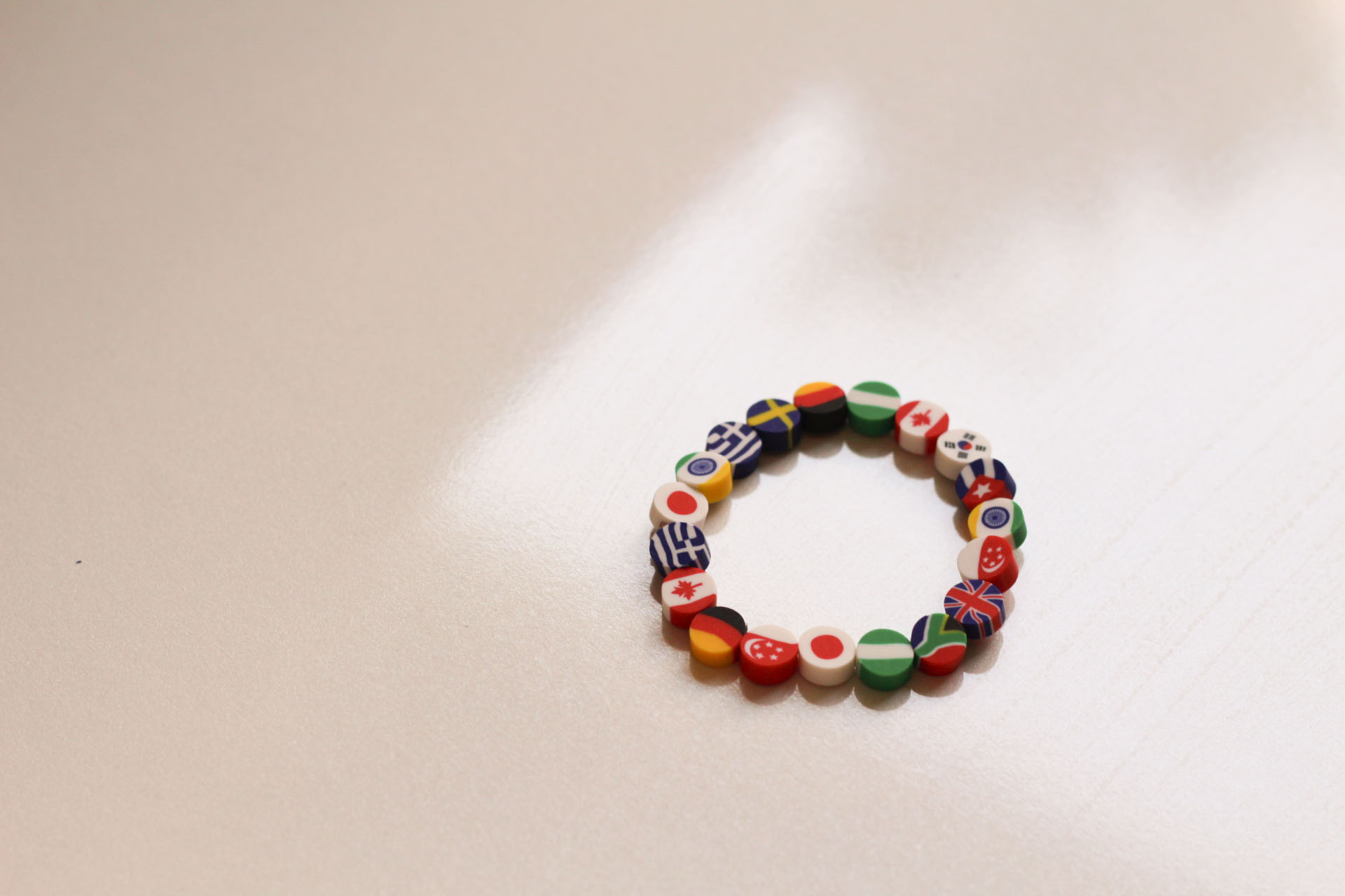 작은 국기들이 알록달록하게 줄지어 있는 이 팔찌는