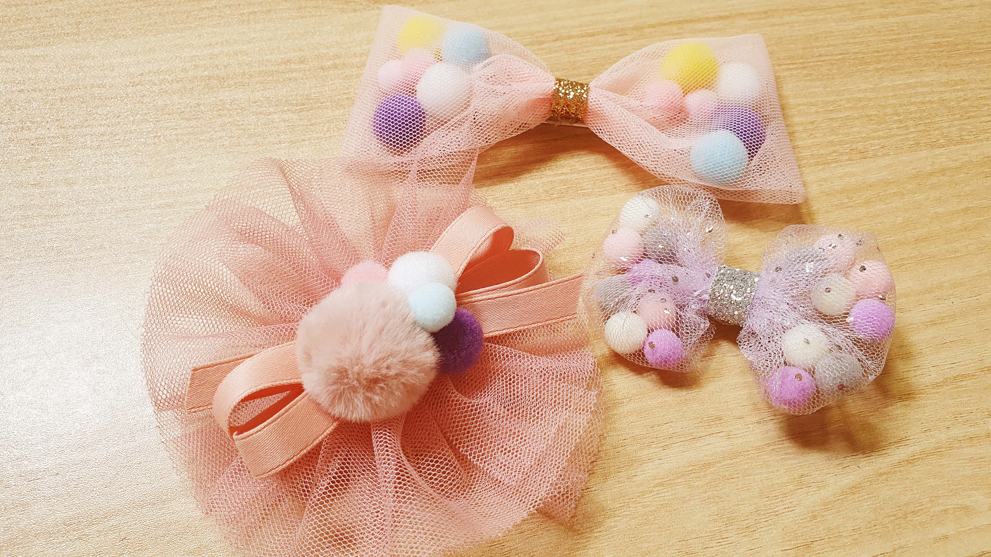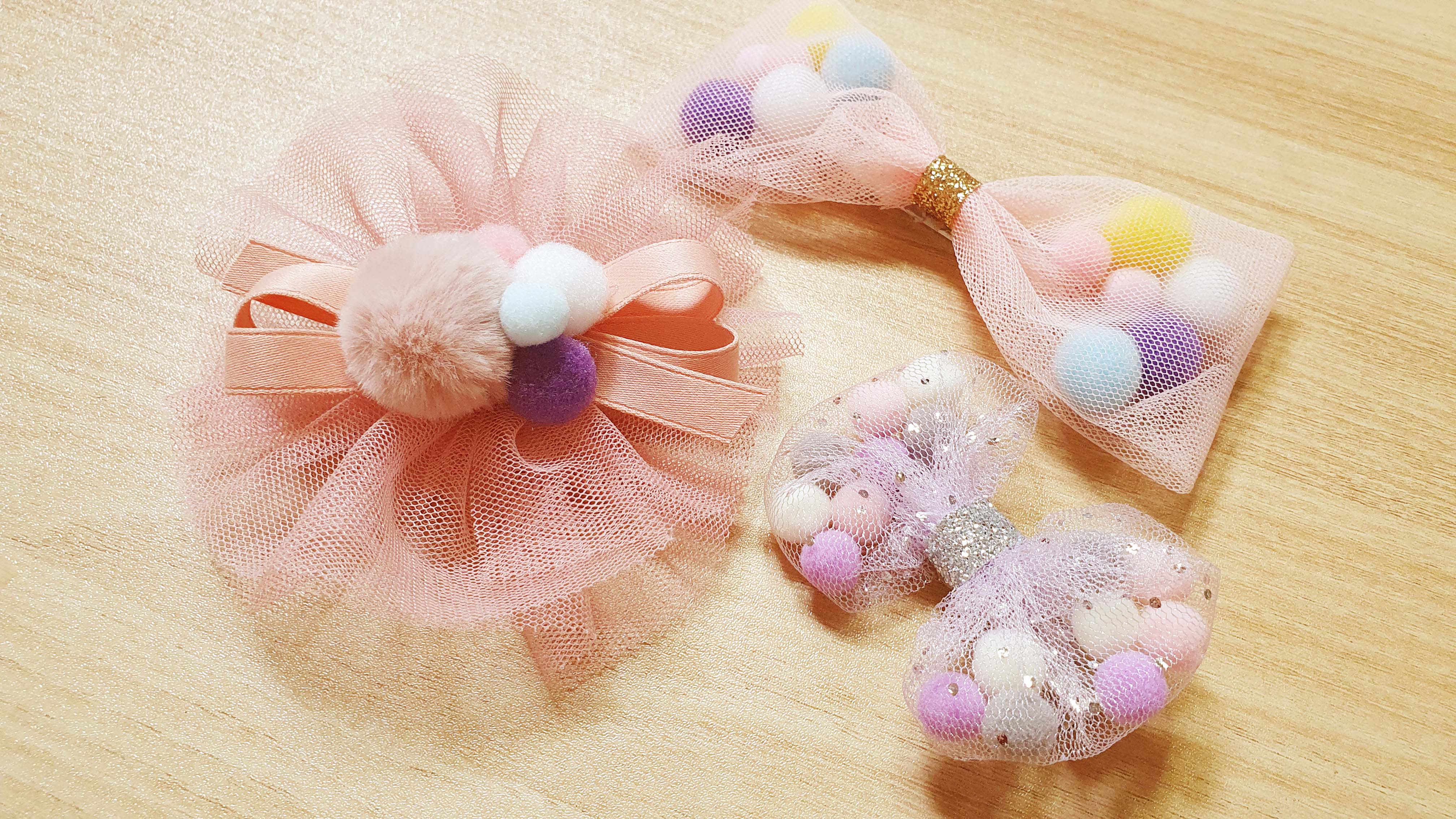 알록달록 귀여운 폼폼이가 들어간 망사리본핀을 만들어 볼께요~