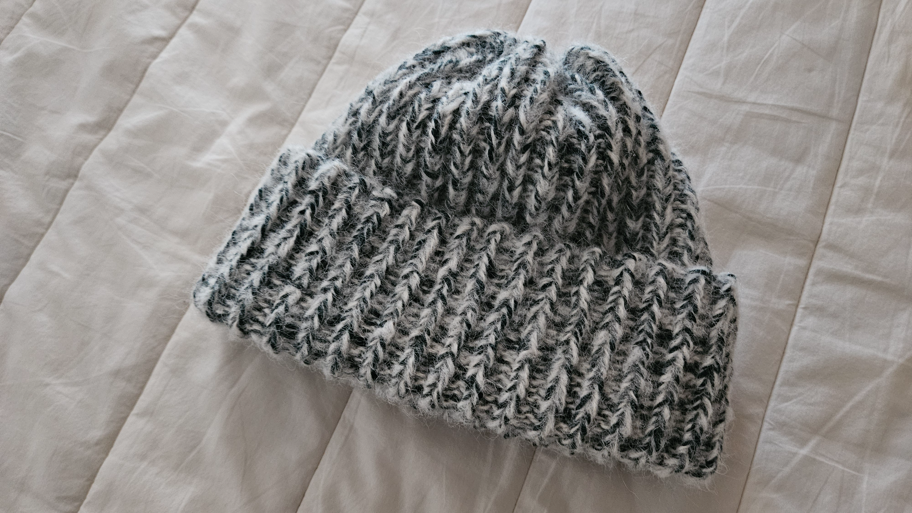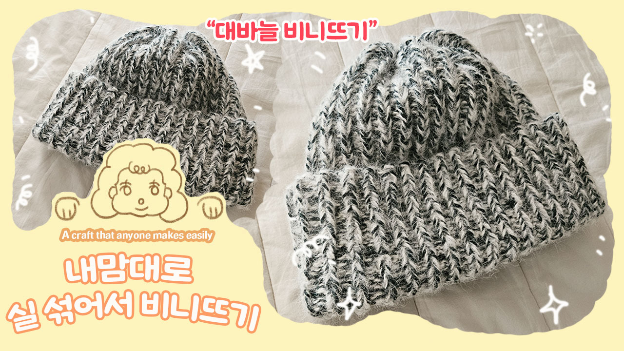 2종류의 실을 섞어서 비니를 떠봤어요. 굵기랑 재질이 달라도 합사하면 의외로 잘 어울려요 :)