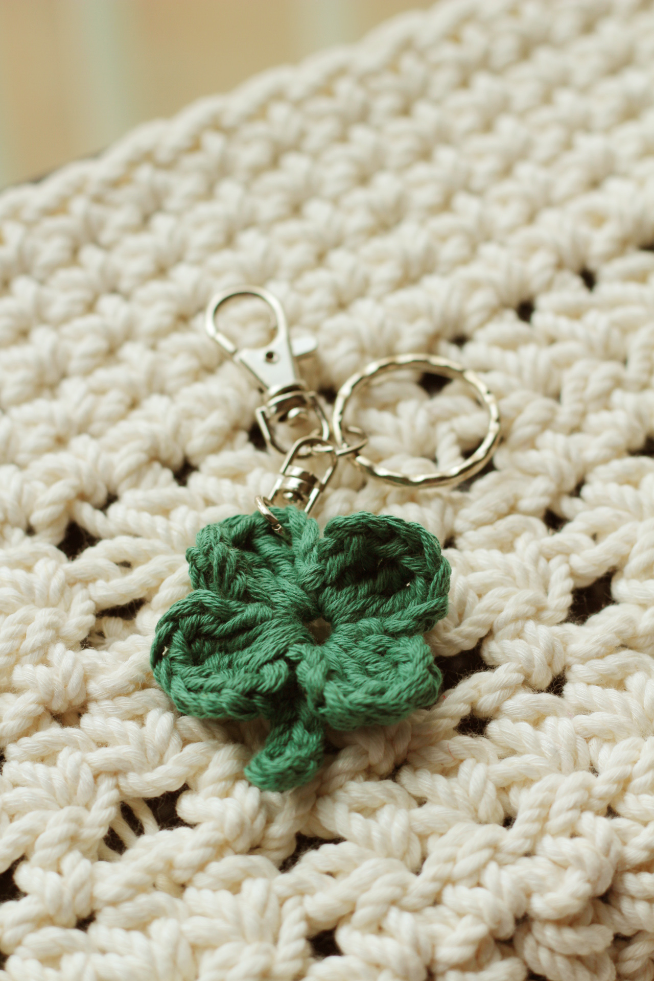코바늘뜨기로 네잎 클로버 행운 키링 만드는 법