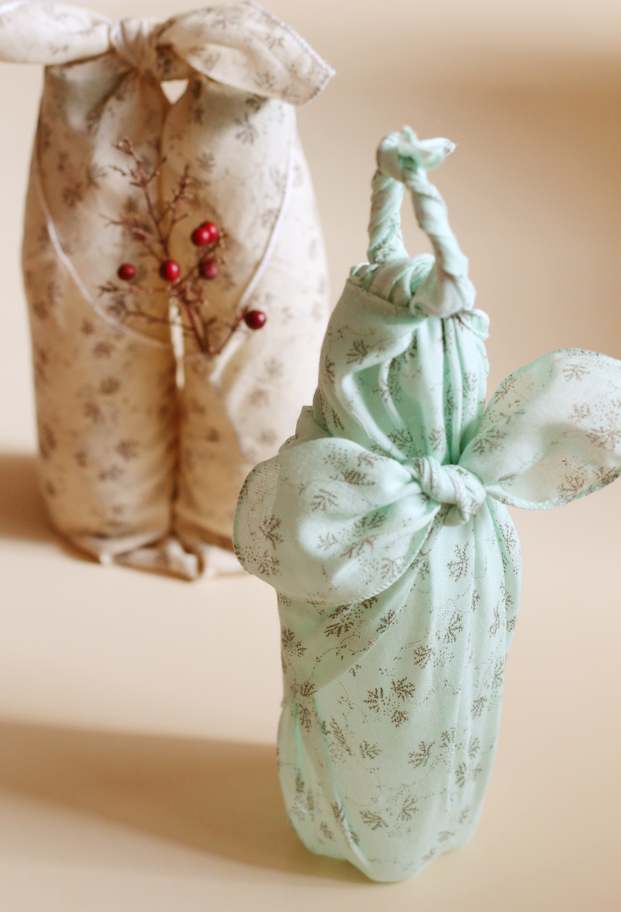 보자기로 병 포장하는 법. 손수건 포장법
